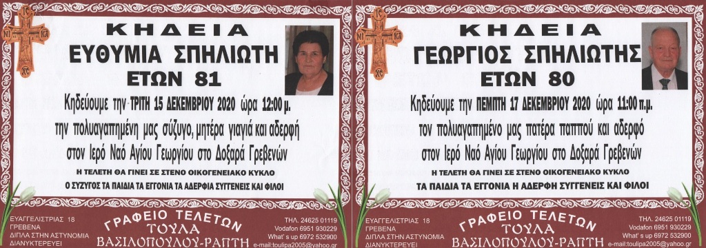 Ο Γιώργος και η Ευθυμία Σπηλιώτη ζούσαν μαζί 60 χρόνια στον Δοξαρά Γρεβενών και απεβίωσαν με διαφορά 2 ημερών αφού πάλεψαν γενναία με τον covid19.