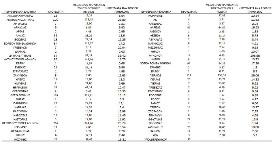 36 κρούσματα στην Π.Ε. Αχαΐας