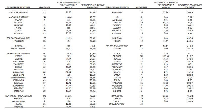 470 κρούσματα στην ΠΕ Κεντρικού Τομέα Αθηνών