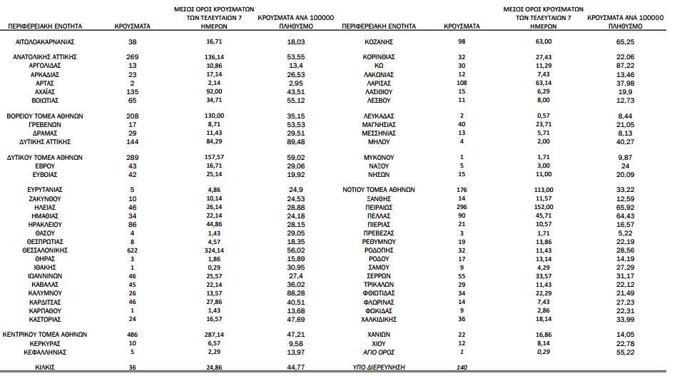 140 κρούσματα υπό διερεύνηση