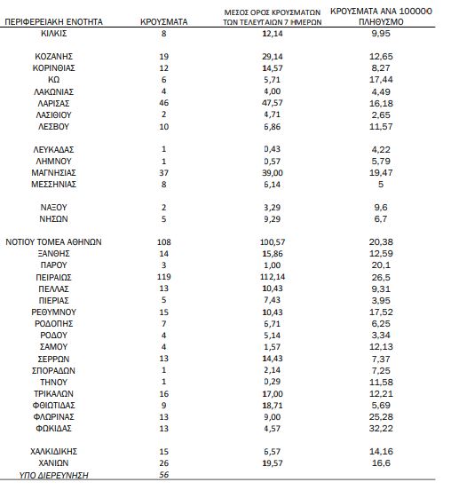 Tέλος, 56 κρούσματα είναι υπό διερεύνηση