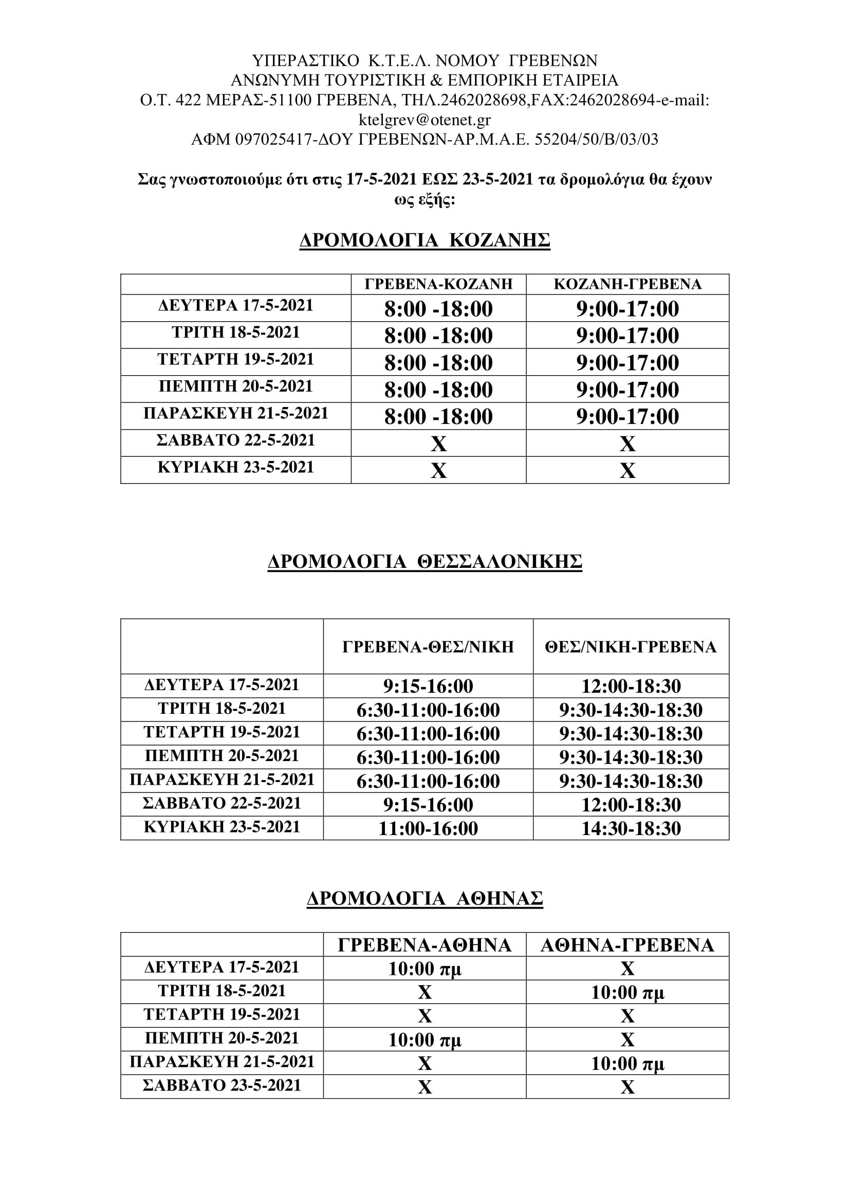 Δείτε αναλυτικά τα νέα δρομολόγια του ΚΤΕΛ Γρεβενών, από την Δευτέρα 17 Μαΐου: Πλοήγηση άρθρων Ο Δήμαρχος Γρεβενών Γιώργος Δασταμάνης στον Μέγα Αρχιερατικό Εσπερινό, για τον Πολιούχο της πόλης μας, Αγιο Αχίλλιο (εικόνες) Κορωνοϊός: Πράσινο στις μετακινήσεις, στο «κόκκινο» 10 περιοχές