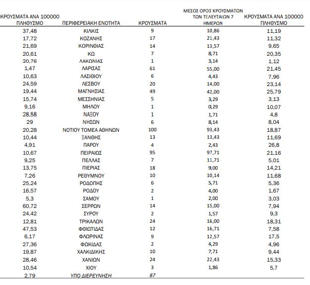 87 κρούσματα υπό διερεύνηση