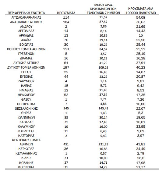 114 κρούσματα στην Π.Ε. Αιτωλοακαρνανίας