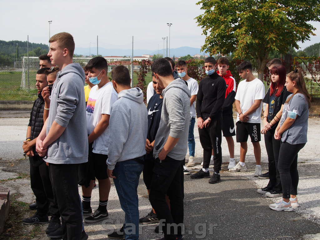 Σύμφωνα με τα νεα μέτρα για την αντιμετώπιση της πανδημίας, μόνο μία μικρή αντιπροσωπεία μαθητών ήταν στον προαύλιο χώρο, ενώ οι υπόλοιποι δέχθηκαν τον αγιασμό στις αίθουσές τους.