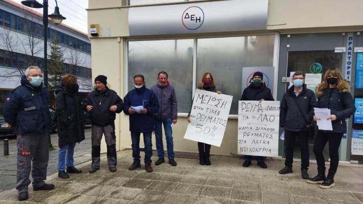 Παράσταση διαμαρτυρίας το μεσημέρι της Τρίτης στο υποκατάστημα της ΔΕΗ στα Γρεβενά πραγματοποίησε η Επιτροπή Αγώνα Σωματείων Γρεβενών.