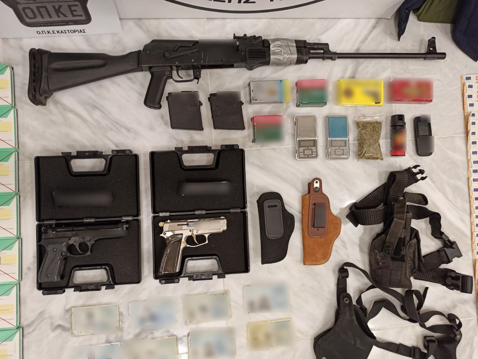 Μεταξύ άλλων κατασχέθηκαν -6- Δελτία Αστυνομικής Ταυτότητας Ελλήνων πολιτών, για τα οποία είχε δηλωθεί απώλεια, -2.961- ναρκωτικά δισκία, -97- οπιούχα έμπλαστρα, -2- ζυγαριές ακριβείας, -146- φυσίγγια διαφόρων διαμετρημάτων, –3.550- ευρώ-, -2- αλεξίσφαιρα γιλέκα κ.α.