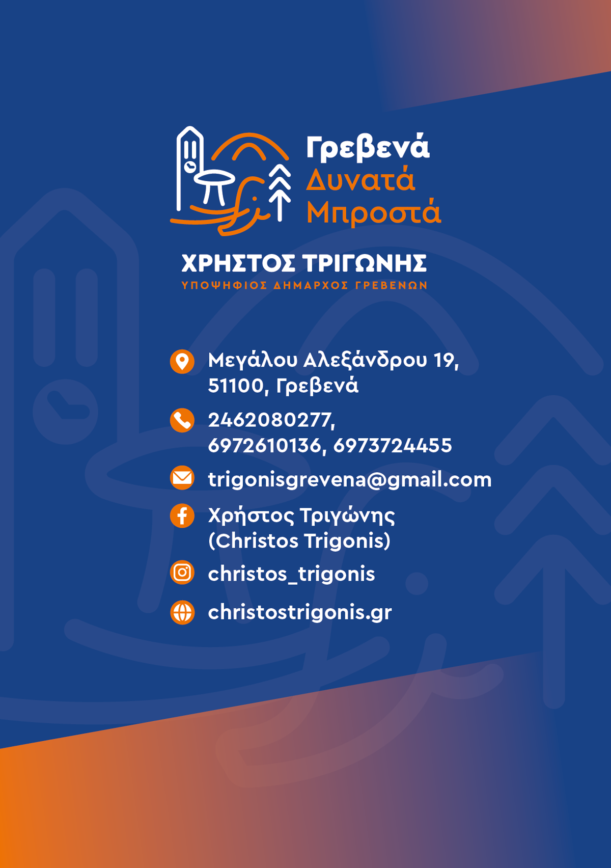 Αναμφίβολα, τα τελευταία χρόνια, έχουν γίνει μεγάλα βήματα, για να βρούμε έναν σταθερό βηματισμό προς την αειφόρο ανάπτυξη του τόπου και για να κρατάμε ζωντανές τις προσπάθειές μας, ώστε να υποστηρίζουμε την ποιότητα της ζωής μας για έναν πράσινο Δήμο, στην πόλη και στα χωριά μας. Το ίδιο θα επιδιώξουμε και ακόμη πιο έντονα, εφόσον οι συνδημότες και οι συνδημότισσές μας, εμπιστευτούν την παράταξή μας «ΓΡΕΒΕΝΑ ΔΥΝΑΤΑ ΜΠΡΟΣΤΑ».