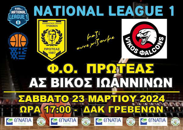 Τον Βίκο Ιωαννίνων θα αντιμετωπίσει ο Φ.Ο. Πρωτέας Γρεβενών το Σάββατο 23 Μαρτίου και ώρα 17:00 στο ΔΑΚ Γρεβενών, για την 21η αγωνιστική της National League 1.