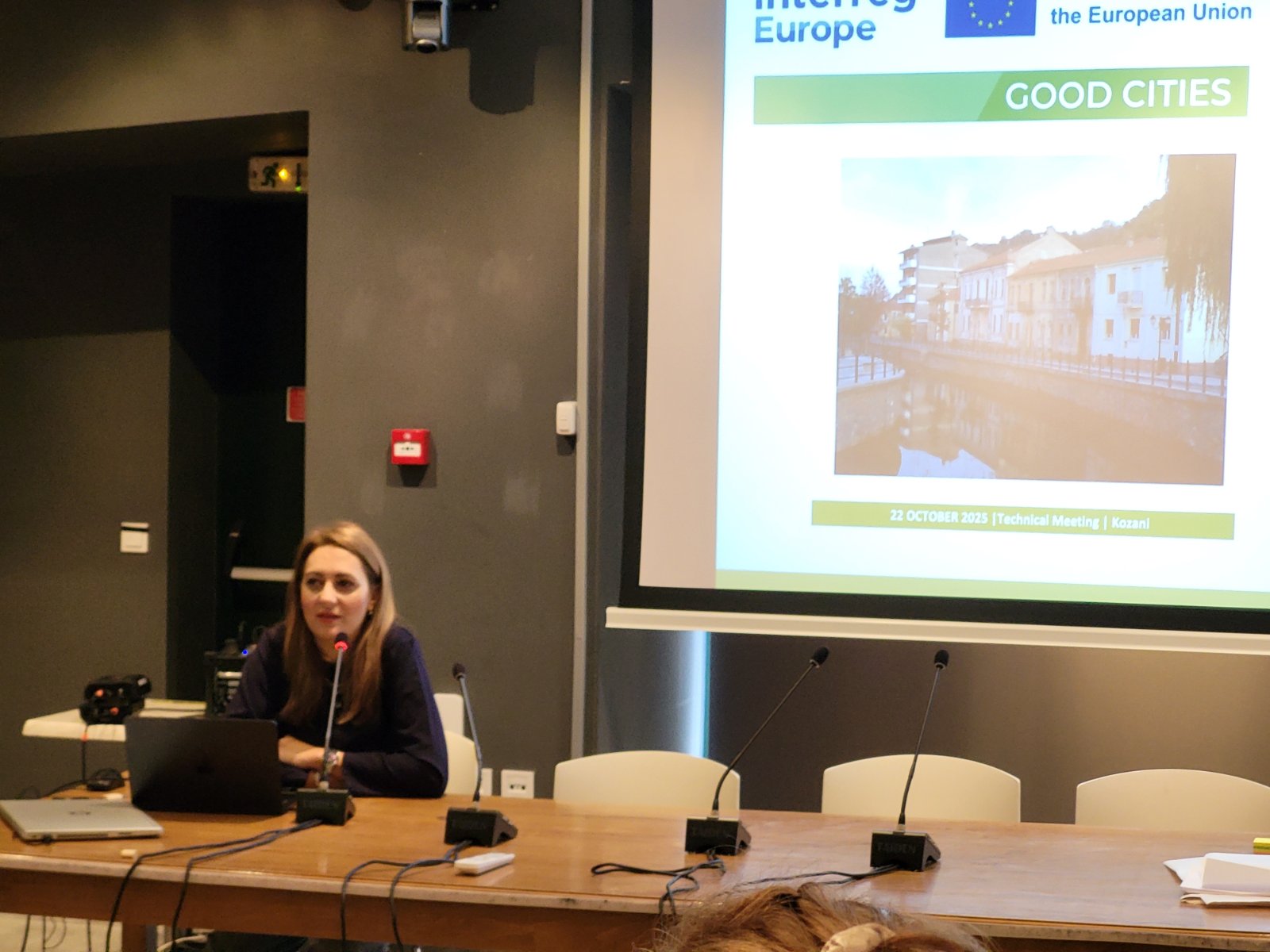 Η Περιφέρεια Δυτικής Μακεδονίας υποδέχθηκε τους εκπροσώπους των ευρωπαίων εταίρων του έργου στην αίθουσα της Δημοτικής Βιβλιοθήκης Κοζάνης (Κοβεντάρειος), όπου φιλοξενήθηκαν οι εργασίες της πρώτης ημέρας. Η Δρ Χριστοπούλου Παρασκευή, Προϊσταμένη του Τμήματος Ευρωπαϊκών Προγραμμάτων, Έξυπνης Εξειδίκευσης και Καινοτομίας της Περιφέρειας Δυτικής Μακεδονίας και Συντονίστρια του έργου GOOD CITIES, το οποίο με τα στελέχη του επιμελήθηκε τον συνολικό συντονισμό της συνάντησης, καλωσόρισε τους παρευρισκόμενους και παρουσίασε την πρόοδο υλοποίησης του έργου στην Περιφέρεια Δυτικής Μακεδονίας.