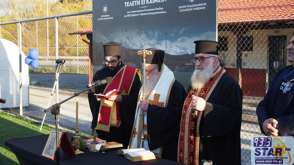Η τελετή ξεκίνησε με τις ευλογίες και τις ευχές του Σεβασμιωτάτου Μητροπολίτη Γρεβενών κ. Δαβίδ, ενώ το πλήθος των παρευρισκομένων καλωσόρισε ο πρόεδρος της ΕΠΣ Γρεβενών Δημοσθένης Κουπτσίδης, εκφράζοντας τη χαρά και τη συγκίνησή του για την ολοκλήρωση ενός έργου που τιμά τη μνήμη του αείμνηστου Χρήστου Ευαγγελόπουλου.