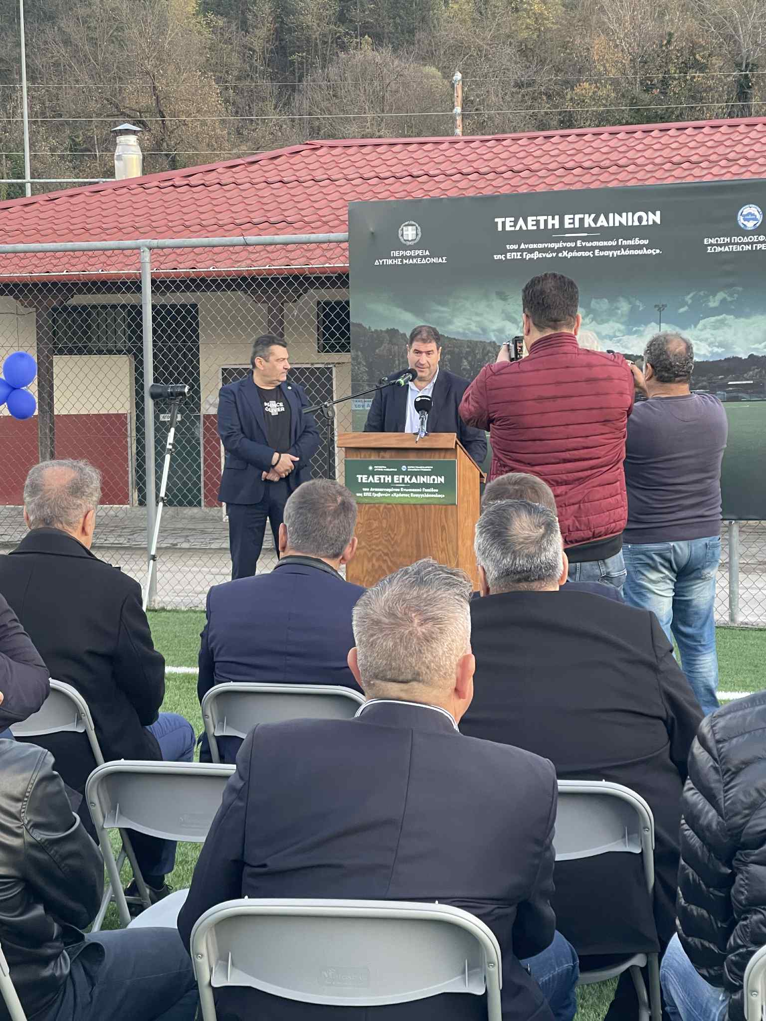 Επίσης χθες, 11 Νοεμβρίου 2025,  ο Αναπληρωτής Υπουργός Αθλητισμού κ. Γιάννης Βρούτσης παραβρέθηκε στον αγιασμό και στα εγκαίνια του ανακαινισμένου Ενωσιακού Γηπέδου “Χρήστος Ευαγγελόπουλος” της ΕΠΣ Γρεβενών, όπου τα έργα που υλοποιήθηκαν συμβάλλουν τα μέγιστα στην ανάπτυξη και αναβάθμιση του ποδοσφαίρου στην περιοχή.
