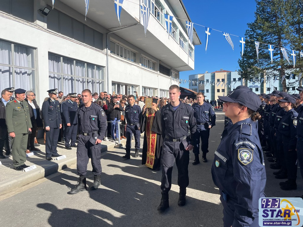 Οι Δόκιμοι Αστυφύλακες έδωσαν τον καθιερωμένο όρκο, παρουσία του Γενικού Αρχιερατικού Εκπροσώπου της Μητρόπολης πατέρα Ευστάθιου Στέφου, του Γενικού Περιφερειακού Αστυνομικού Διευθυντή Δυτικής Μακεδονίας, Ταξίαρχου κ. Κωνσταντίνου Σπανούδη, της διοικήτριας κας Μέντζιου, εκπροσώπων όλων των σωμάτων ασφαλείας, παρουσία των τοπικών αρχών, αλλά και πλήθους συγγενών και φίλων.
