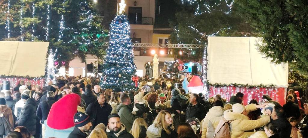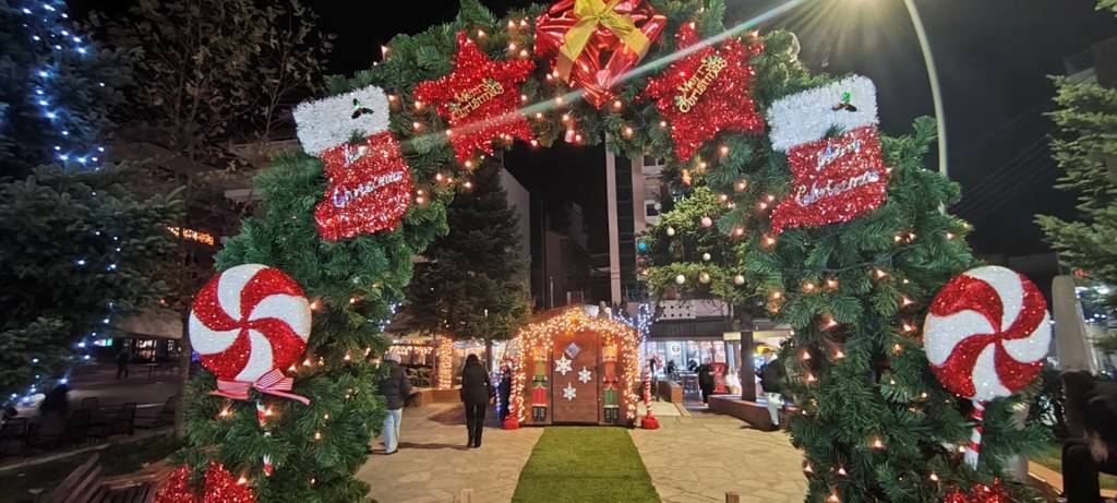 Όμορφες, φωτεινές εικόνες, το βράδυ της Δευτέρας από την κεντρική πλατεία των Γρεβενών.