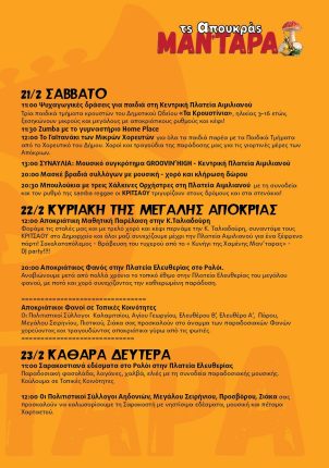 Πλοήγηση άρθρων «Τσ’ Απούκρας Μαν’τάρα» 2026: Τα Γρεβενά φορούν τα γιορτινά τους και σας προσκαλούν! – Δείτε το πλήρες πρόγραμμα της Γρεβενιώτικης Αποκριάς – (εικόνες)